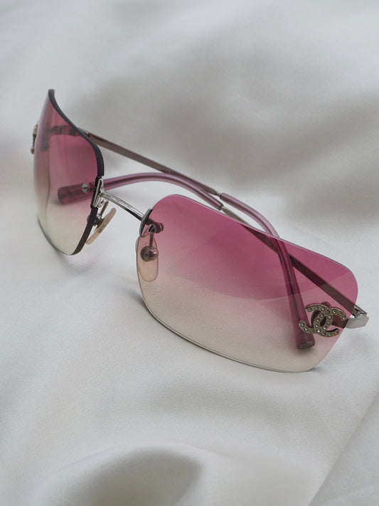 CHANEL 4017-D CRYSTAL CC LOGO RIMLESS SUNGLASSES PINK