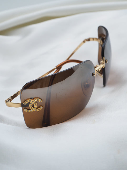 CHANEL 4017-D CRYSTAL CC LOGO RIMLESS SUNGLASSES BROWN