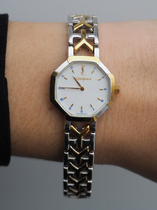 YVES SAINT LAURENT OCTAGONAL BI-COLOR WATCH