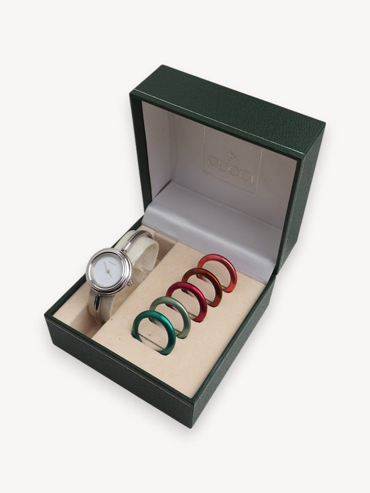 GUCCI INTERCHANGEABLE BEZEL WATCH SILVER