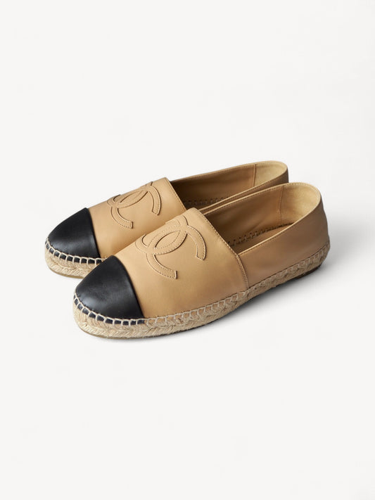 CHANEL BEIGE/BLACK LEATHER CC ESPADRILLES 40