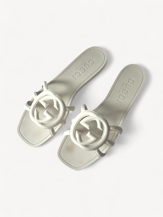 GUCCI INTERLOCKING G SLIDE SANDALS WHITE