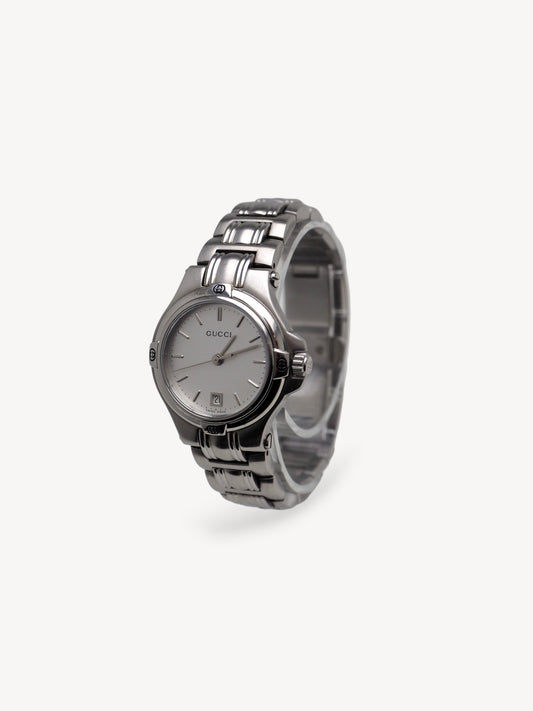 GUCCI 1500L PINK MOTHER OF PEARL HORSEBIT WATCH SILVER