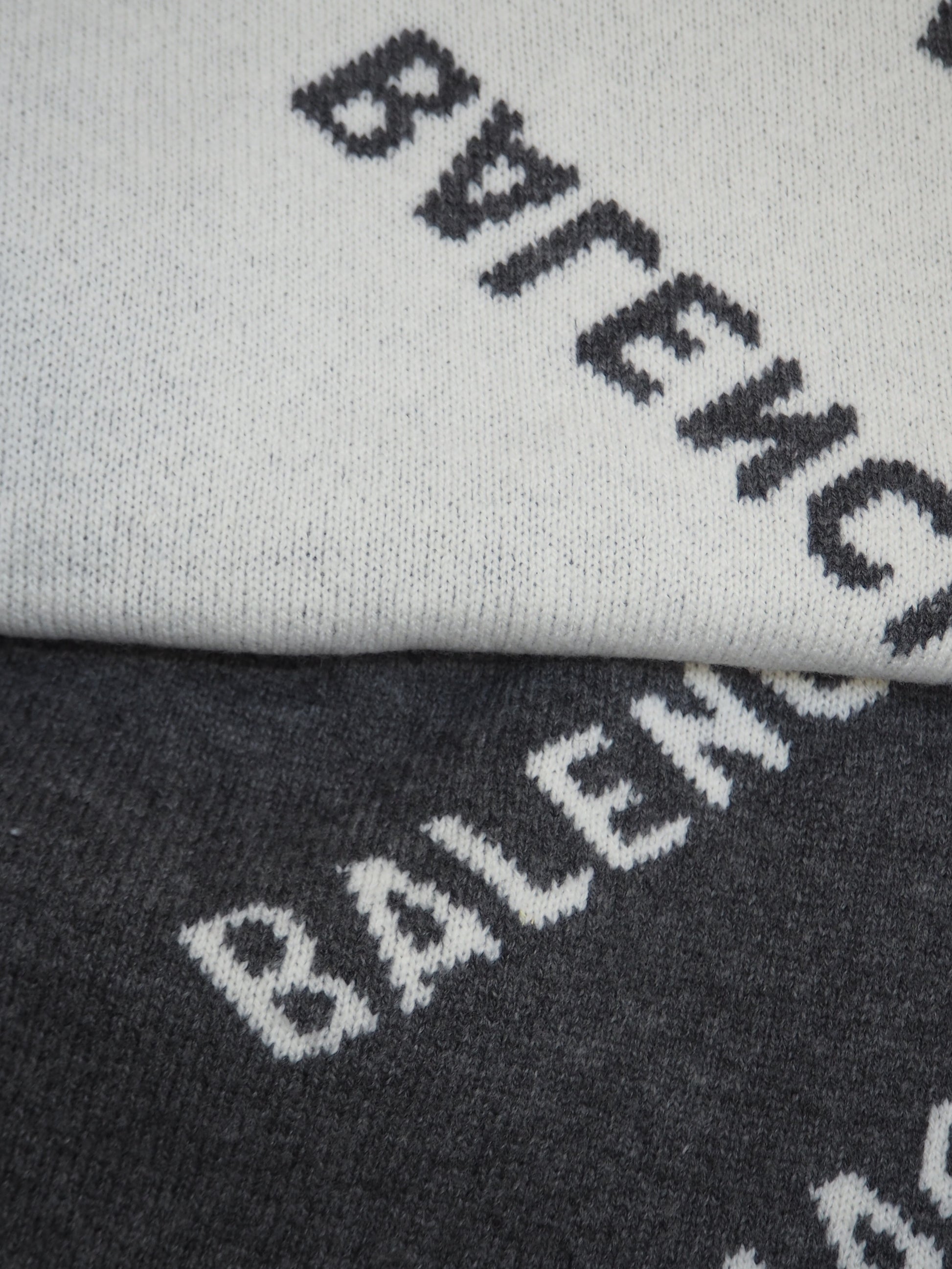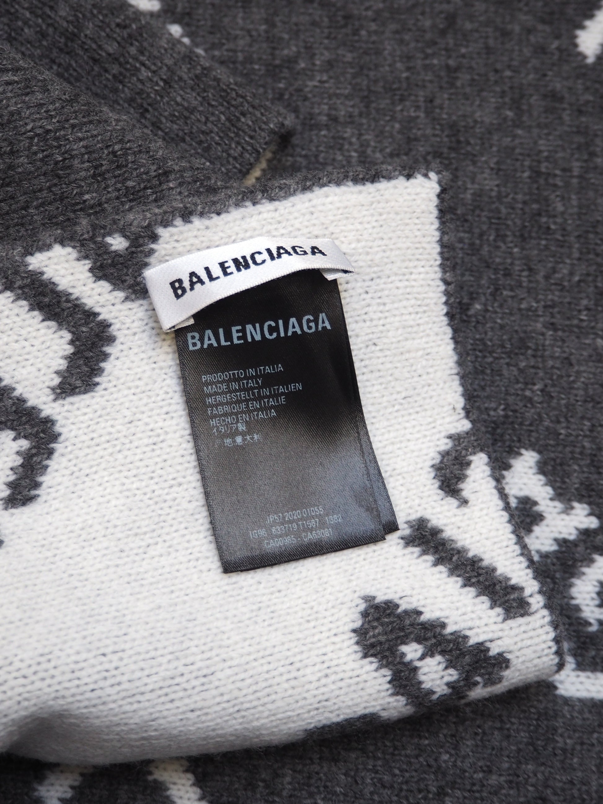 Balenciaga wool logo scarf in grey and white. Refer to the images for a detailed view of the item.