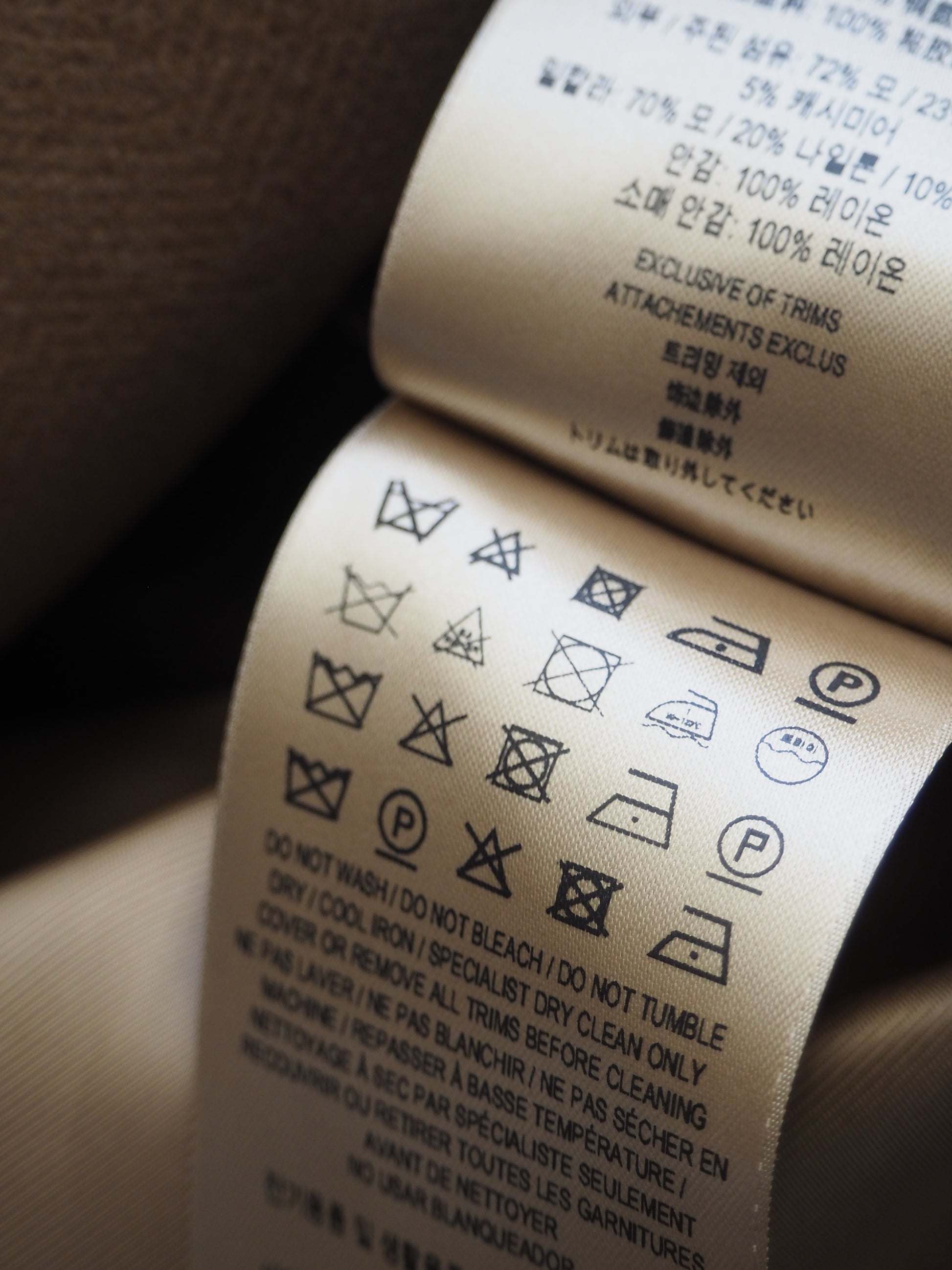 - Outer fabric; 72% wool, 23% polyamide, 5% cashmere