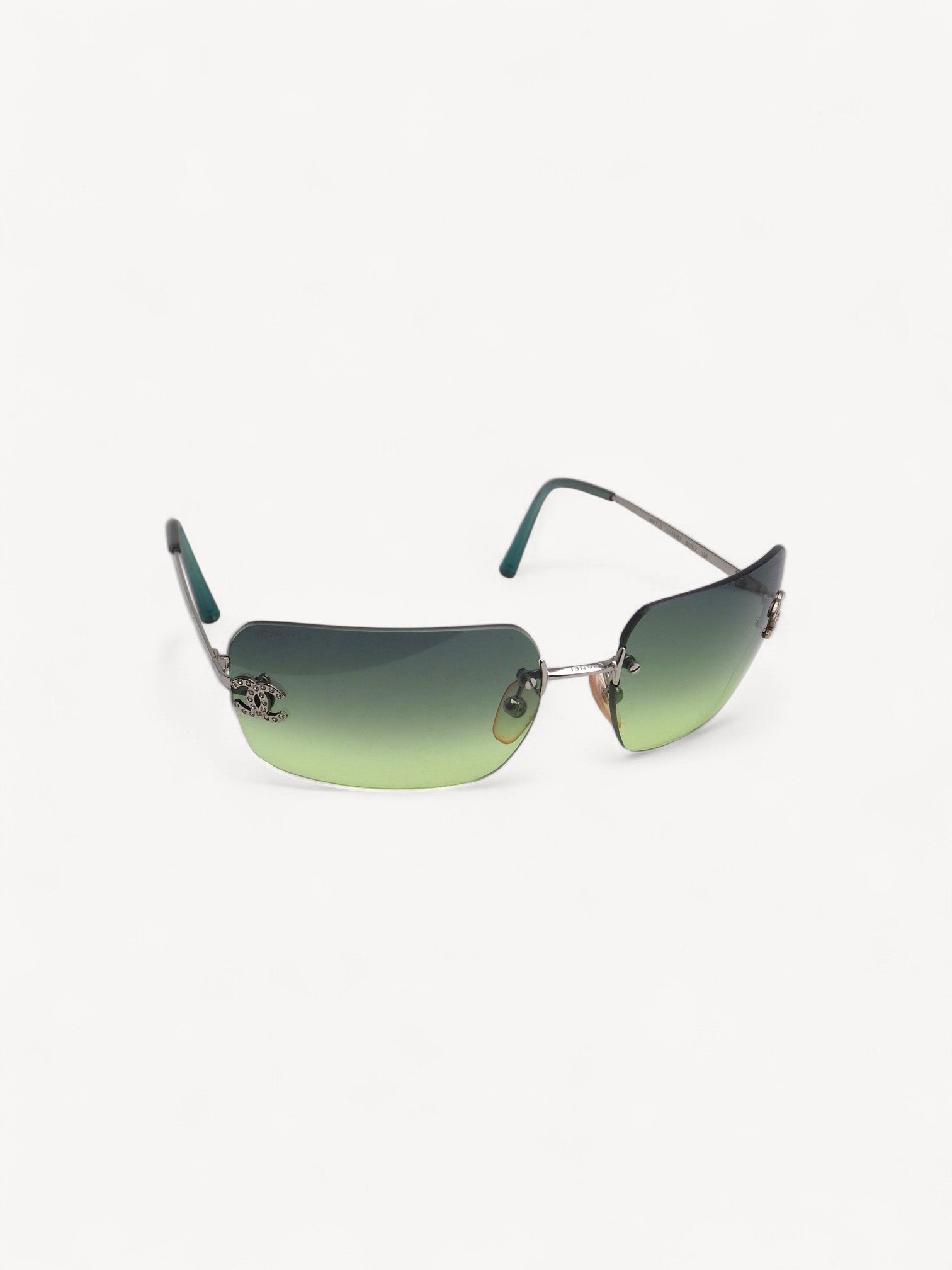 CHANEL 4017-D CRYSTAL CC LOGO RIMLESS SUNGLASSES GREEN