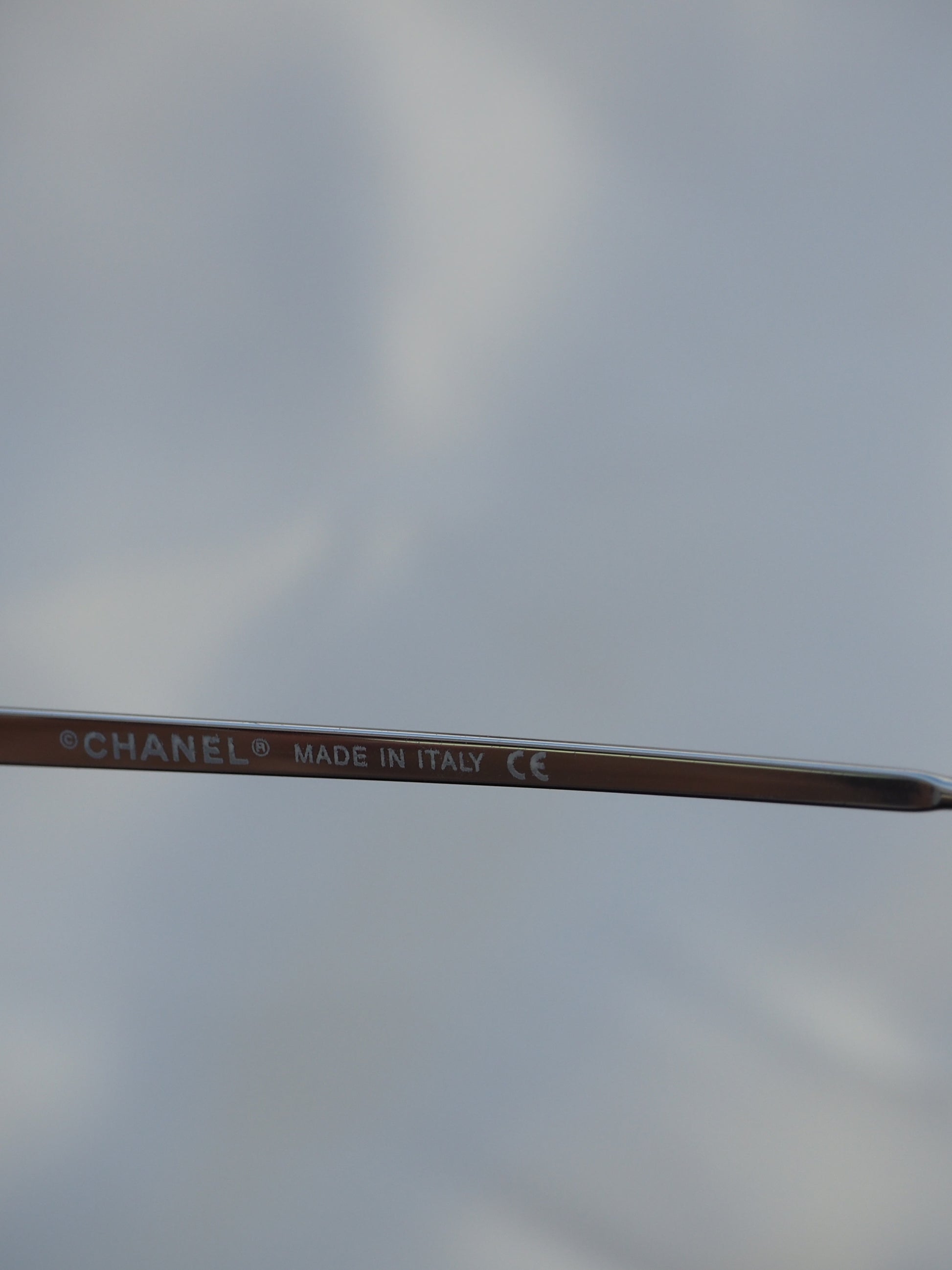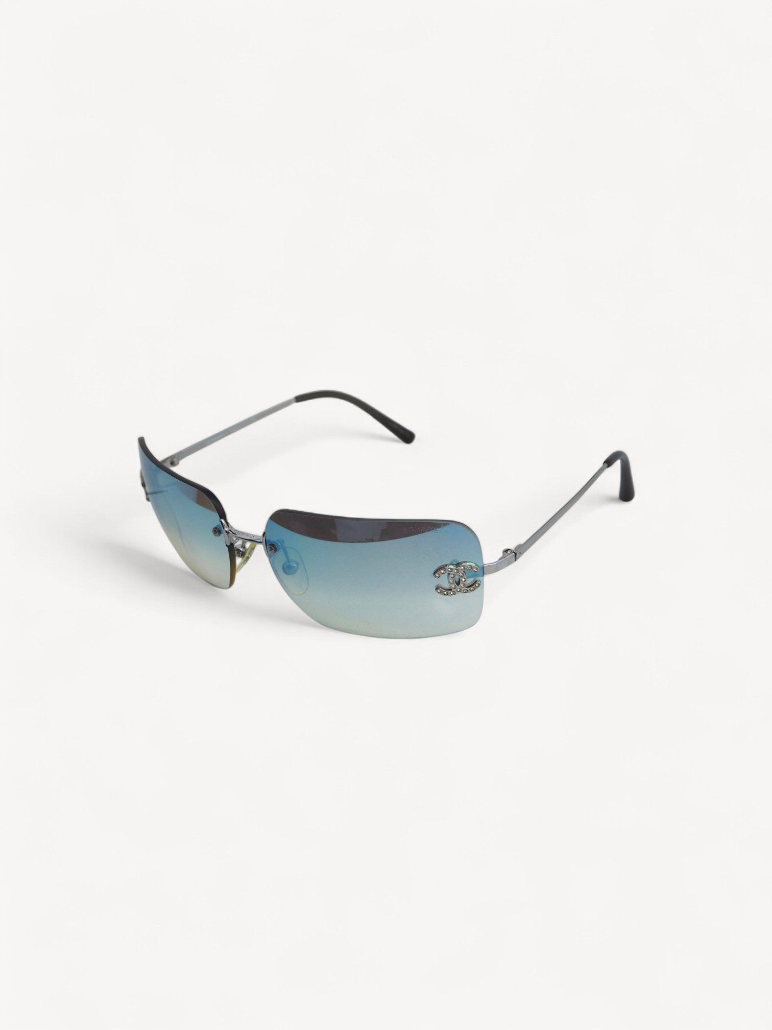 Rare find! This iconic pair of vintage Chanel sunglasses features metallic gradient lenses and the signature crystal‑embellished CC logos on both lenses. The stones are intact and sparkling. There are slight scratches on the lenses. Please refer to the images for a detailed view of this beautiful piece.