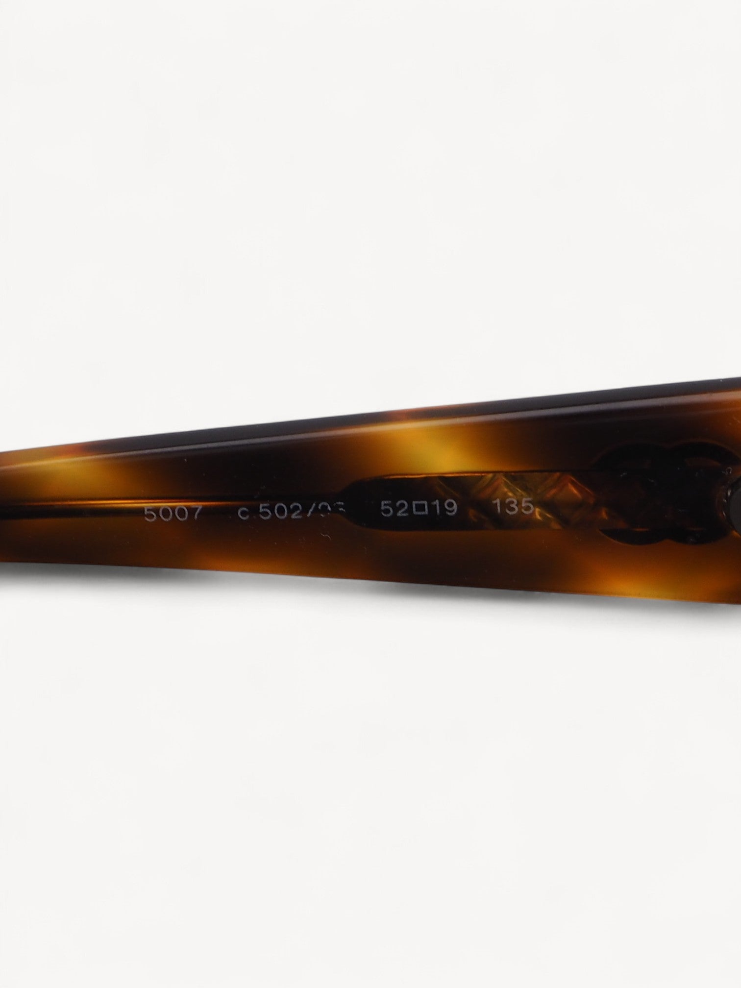 As seen on Lily-Rose Depp! These iconic Chanel 5007 sunglasses feature oval lenses and a tortoise frame, finished with the signature gold CC logo on both temples. This pair is in good condition with slight scratches. Please refer to the images for a detailed view of the item.