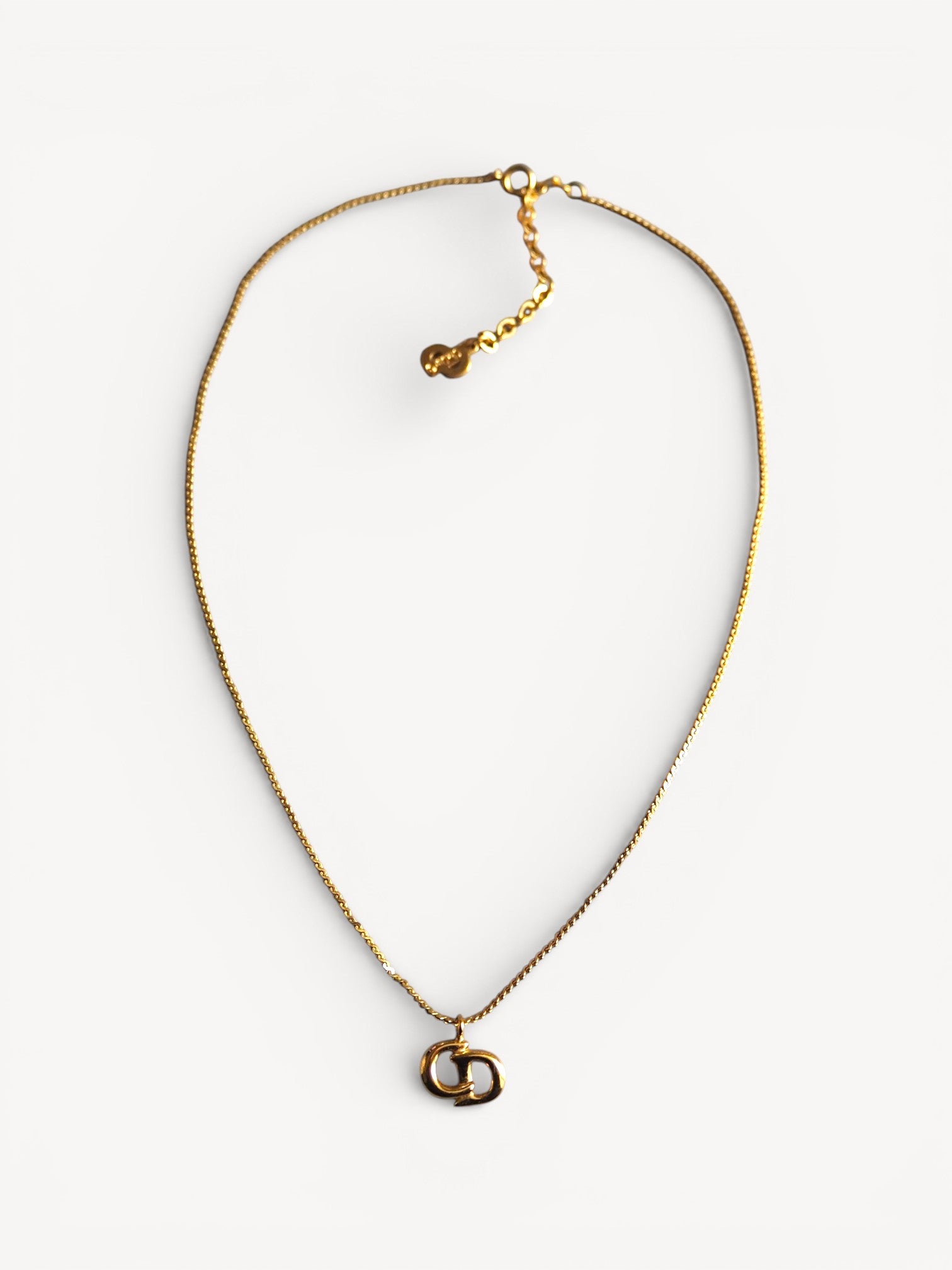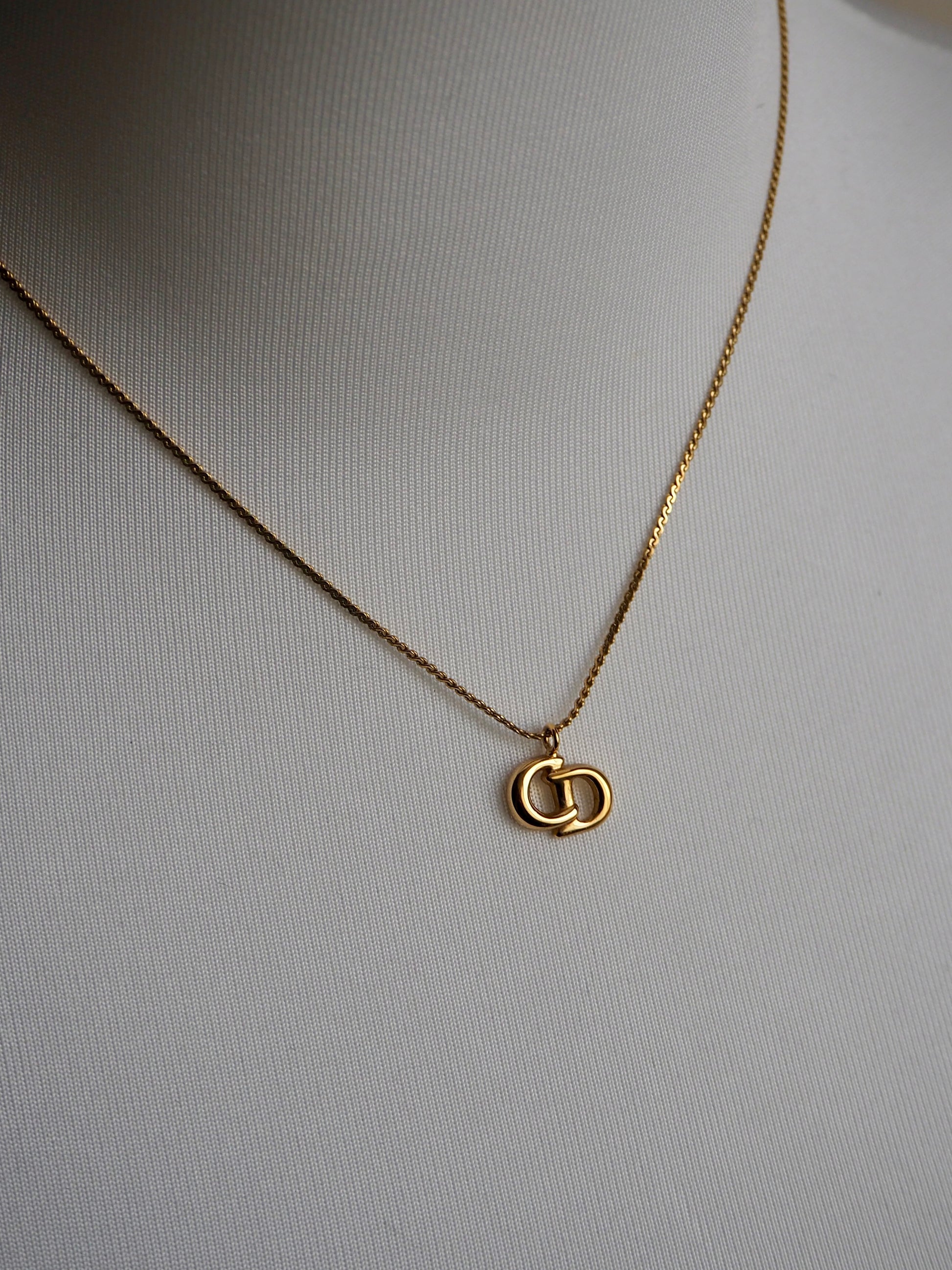 This 18k gold-plated Dior necklace features a fine chain and a polished CD logo pendant. Designed with an adjustable extension chain and finished with subtle branding at the clasp. Crafted from high-quality stainless steel, it has maintained its color and shine for over 20 years. Please refer to the images for a detailed view of the item.