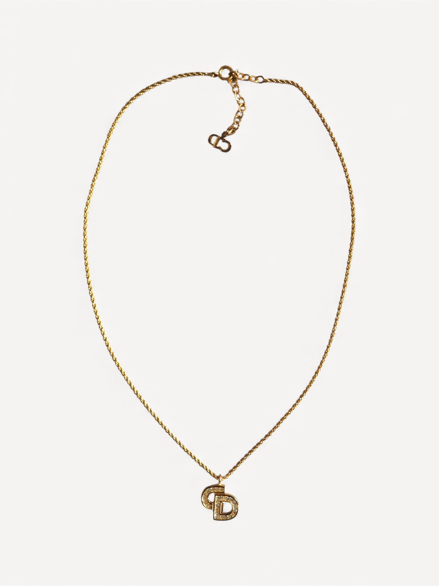 Vintage Dior 18k gold-plated necklace with a crystal-studded “CD” pendant. Please refer to the images for a detailed view of the item.