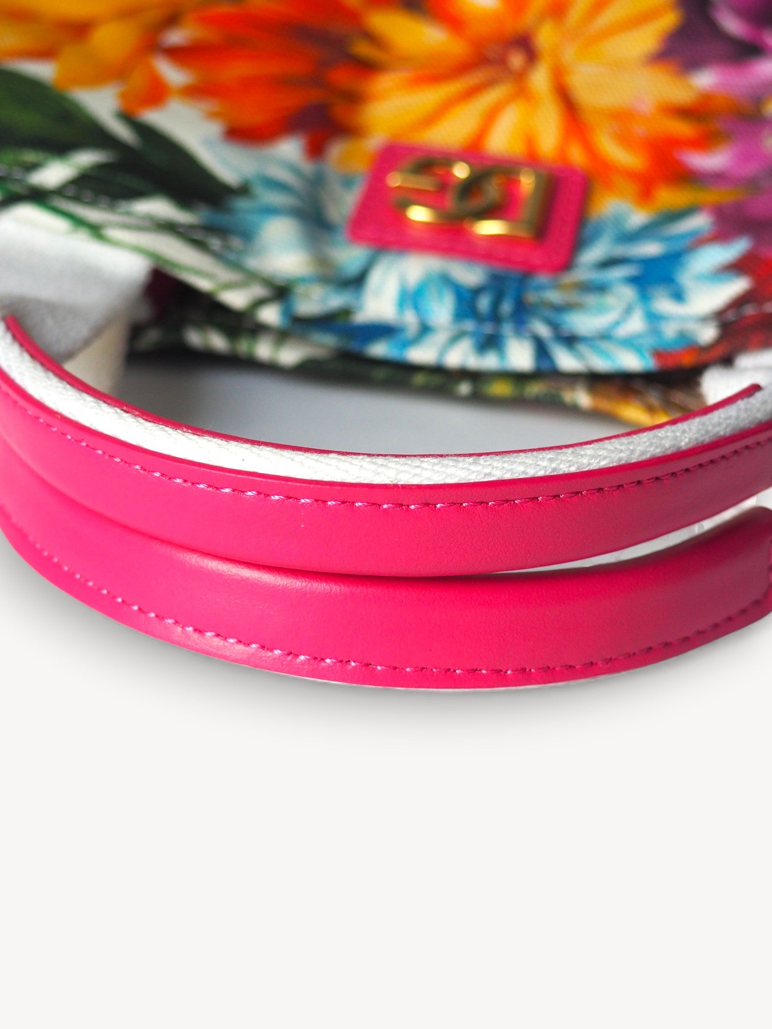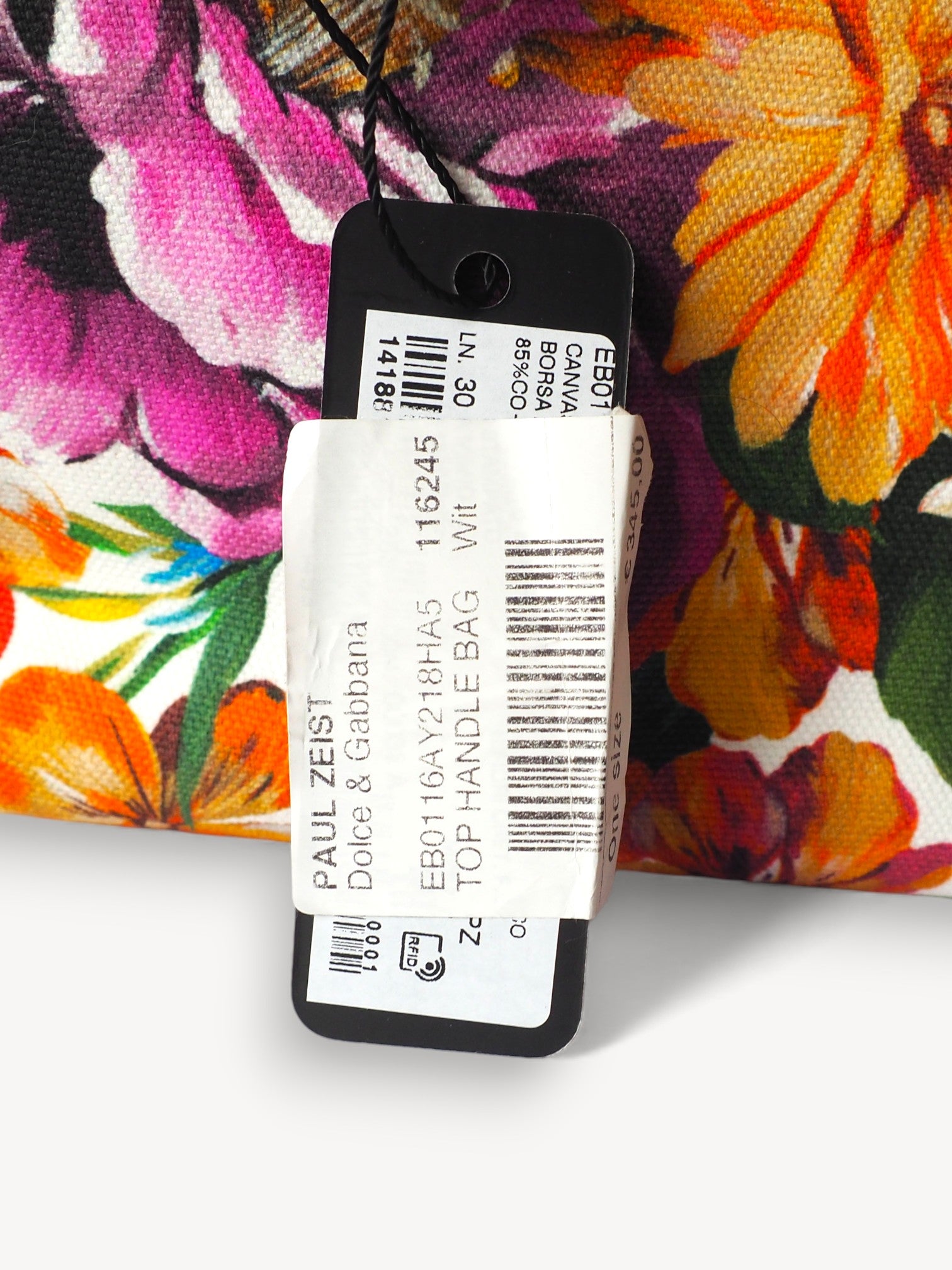 Dolce & Gabbana top handle bag crafted from floral printed fabric, finished with leather handles and the iconic gold-tone D&G logo. Secured with a snap-button closure. New with price tag.