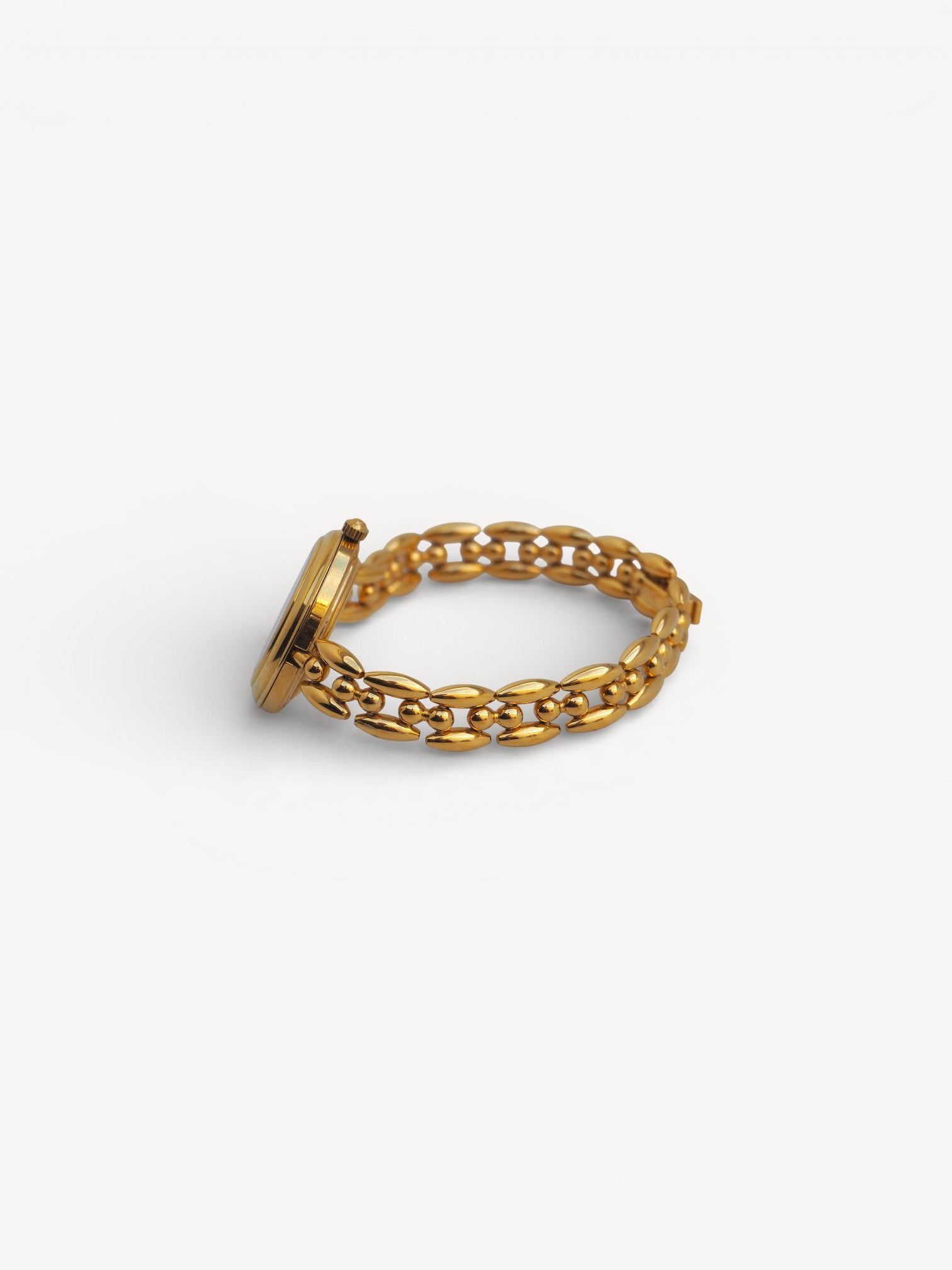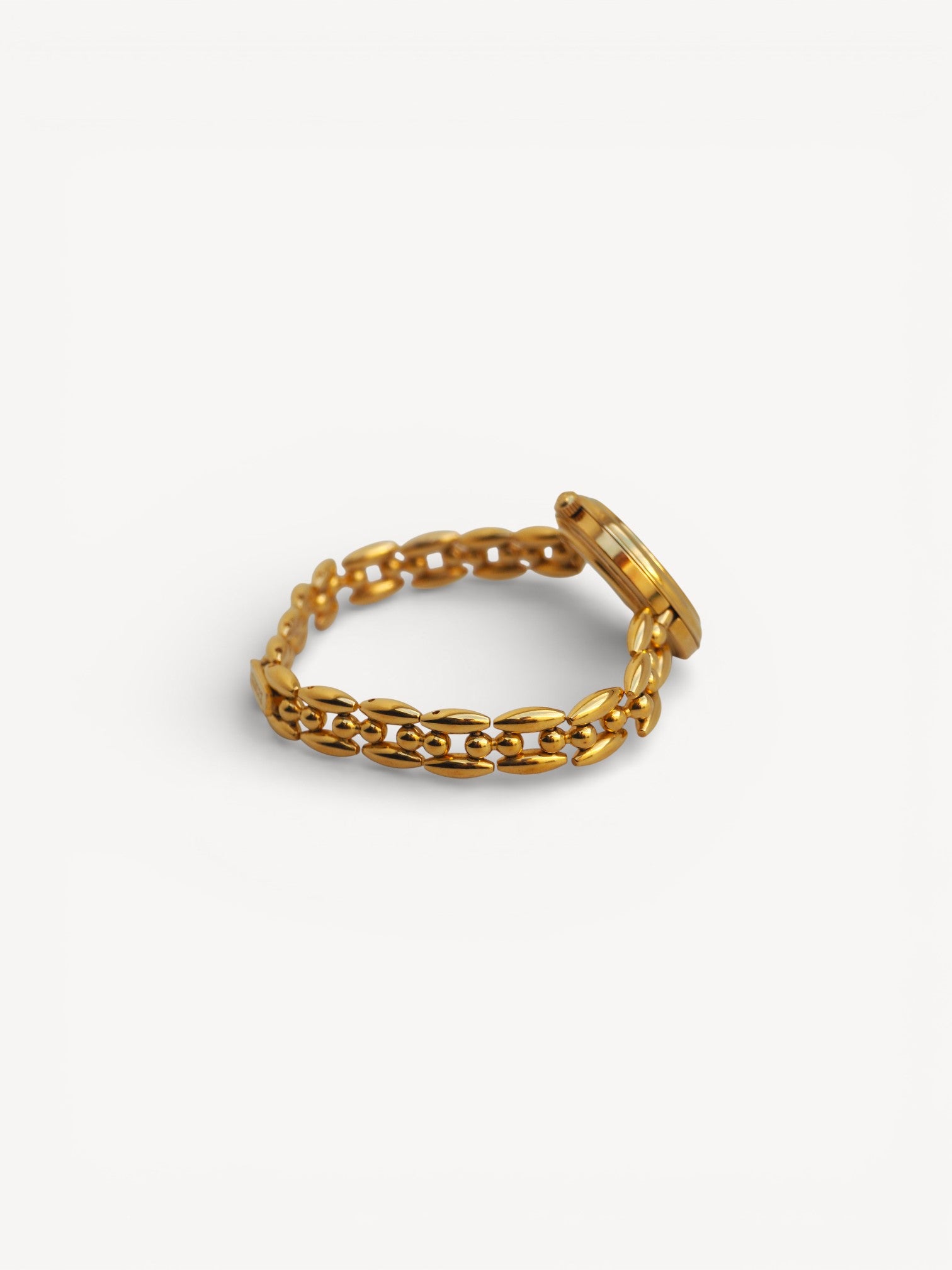 - Gold-plated stainless steel case and bracelet