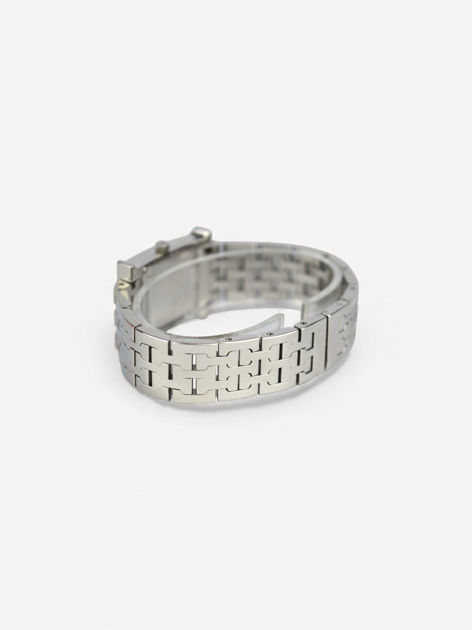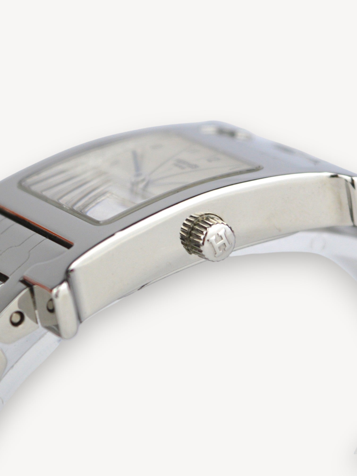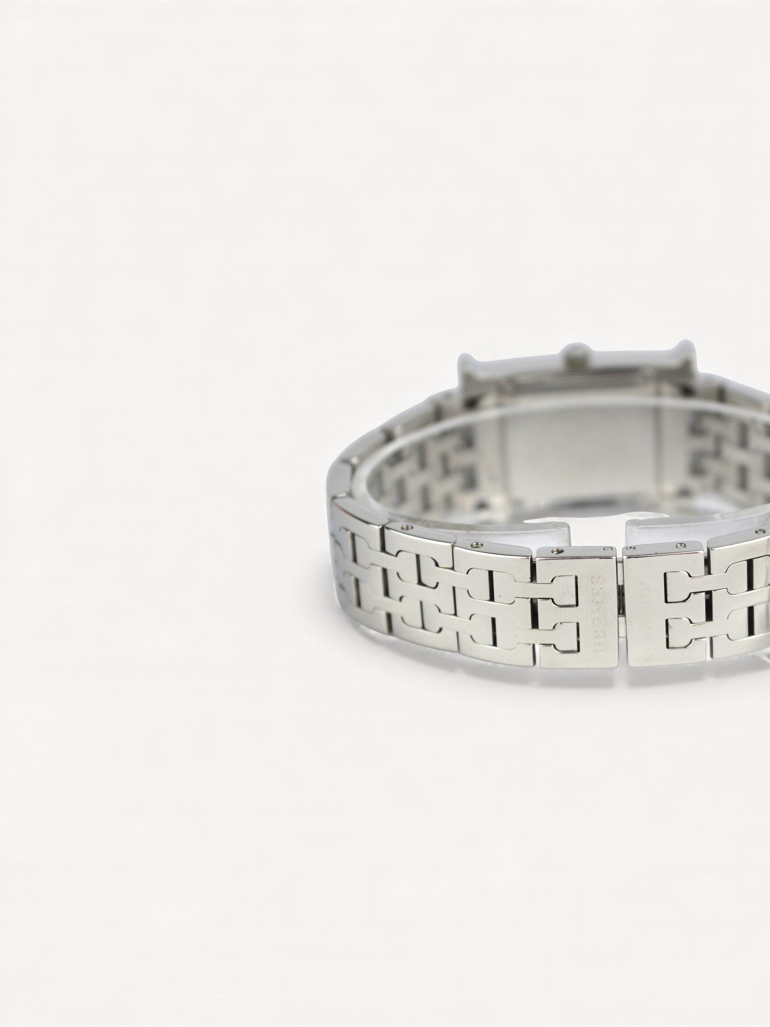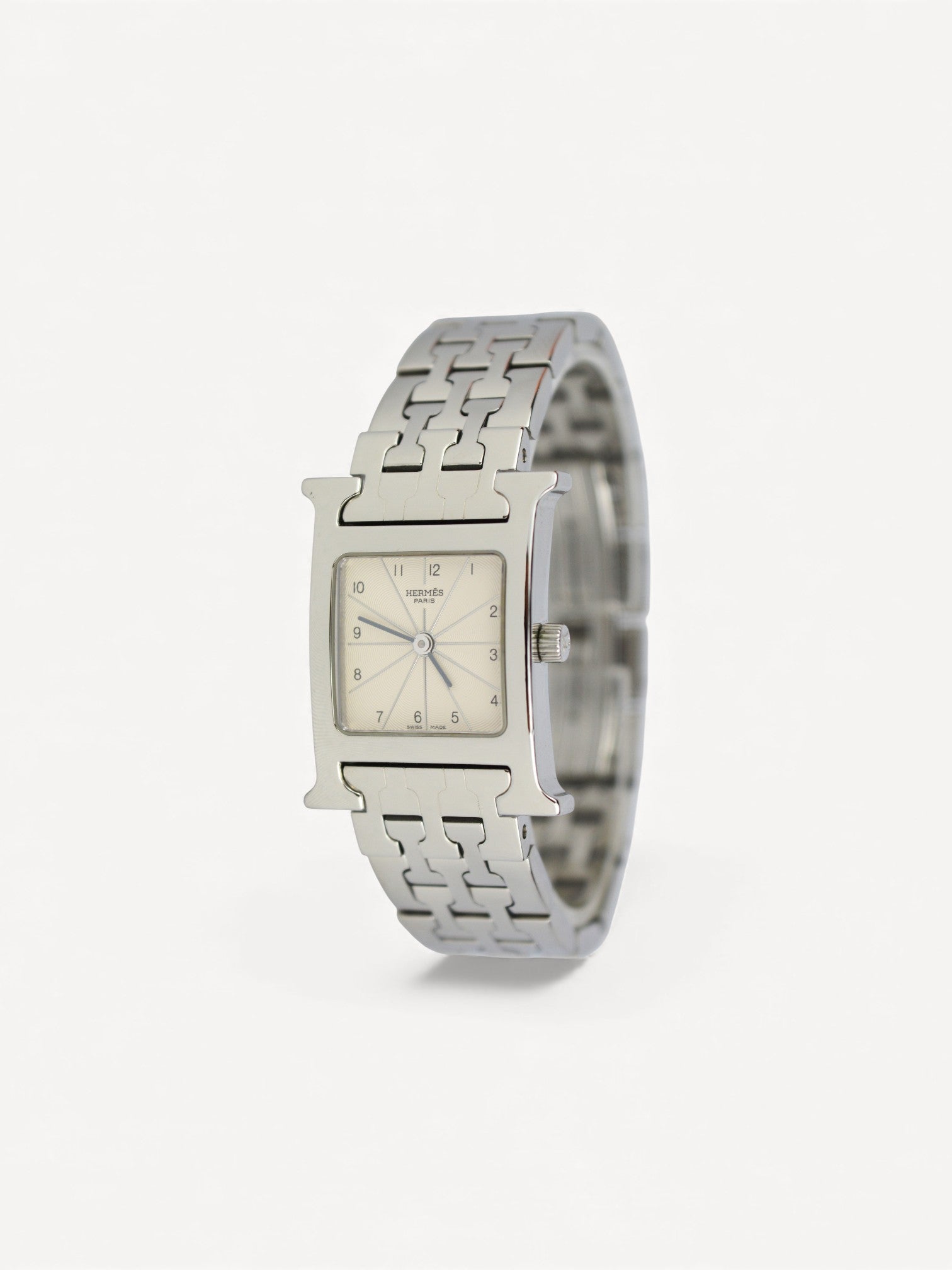 Hermès Heure H Mini watch in steel, featuring the iconic ‘H’ case. This elegant timepiece is perfect for everyday wear or special occasions. Please refer to the images for a detailed view of the item.