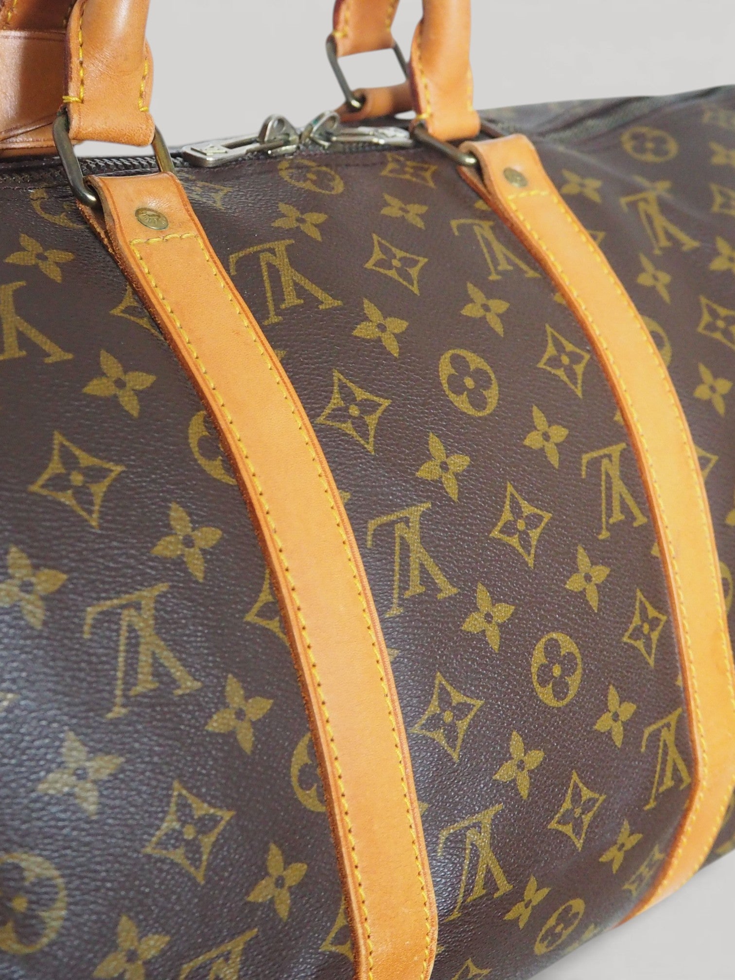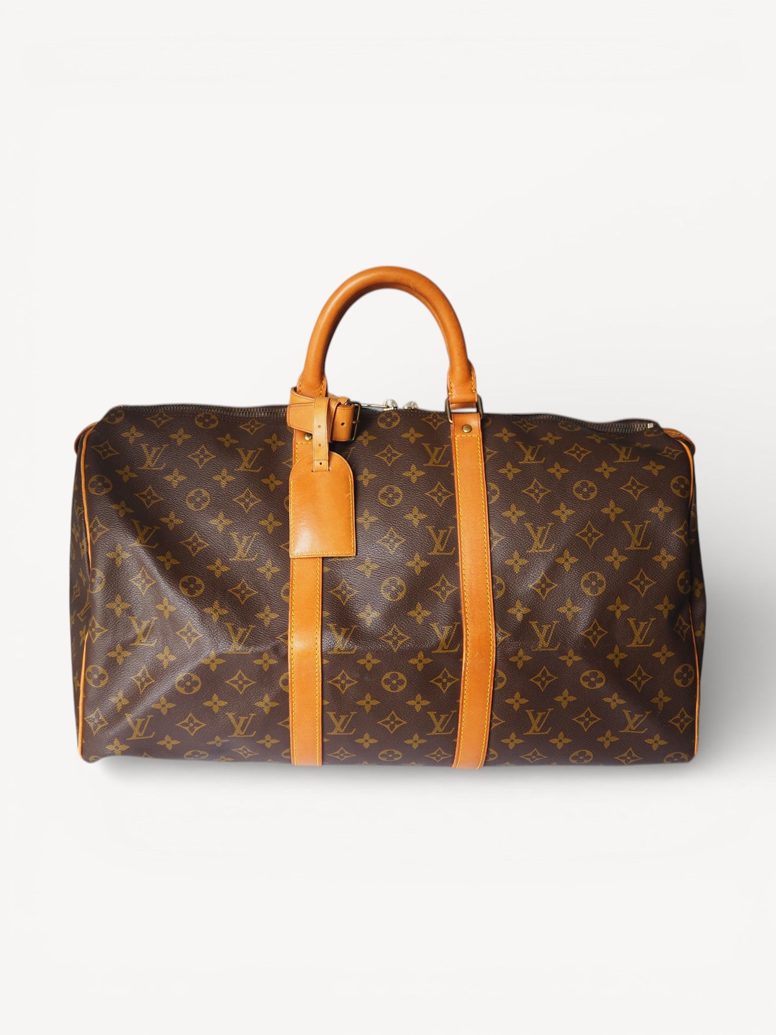 The Louis Vuitton Keepall 50 is a classic travel bag that's perfect for weekend getaways or short trips. The Vachetta leather has a beautiful honey color and. The zipper shows discoloration. Dating back to 1984, it remains in very good condition for its age.
