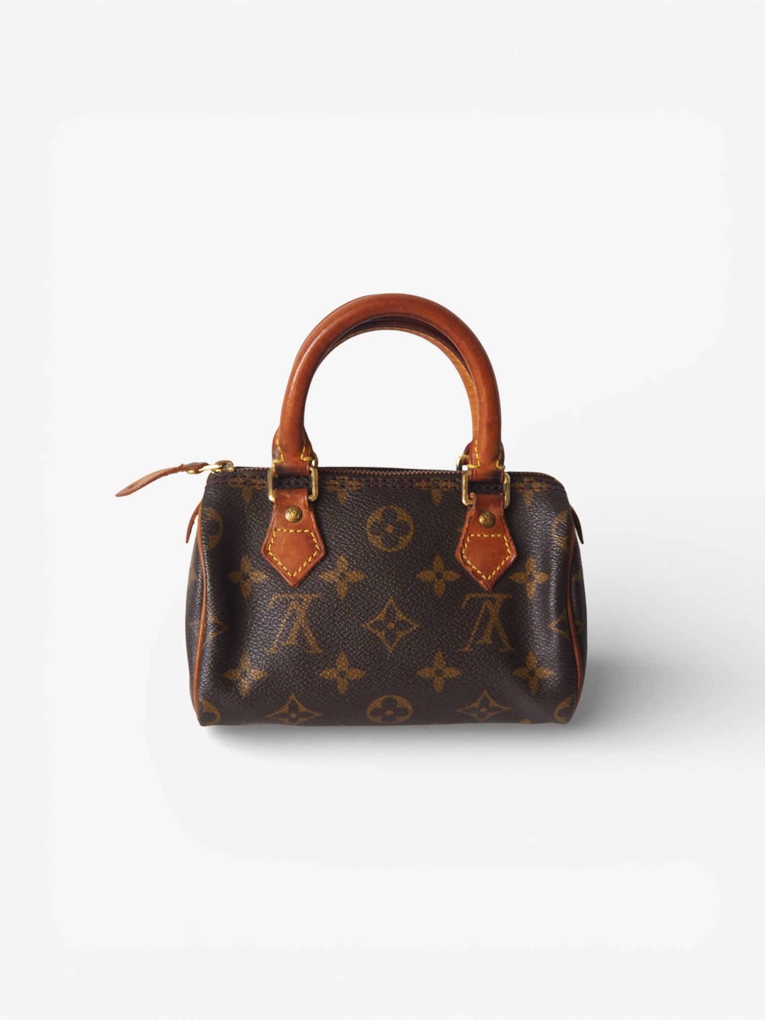 The iconic Mini Speedy is the miniature version of Louis Vuitton’s classic Speedy bag, designed to elegantly carry your small essentials. It features LV’s signature Monogram canvas with natural Vachetta leather handles and gold-tone hardware. Comes with a detachable Monogram strap, allowing it to be worn by hand or crossbody. Please refer to the images for a detailed view of the item.
